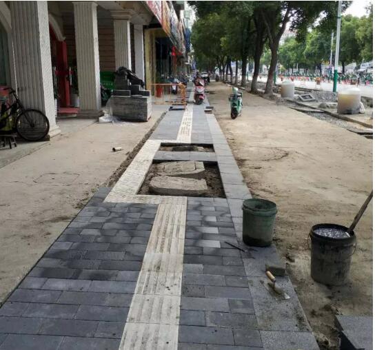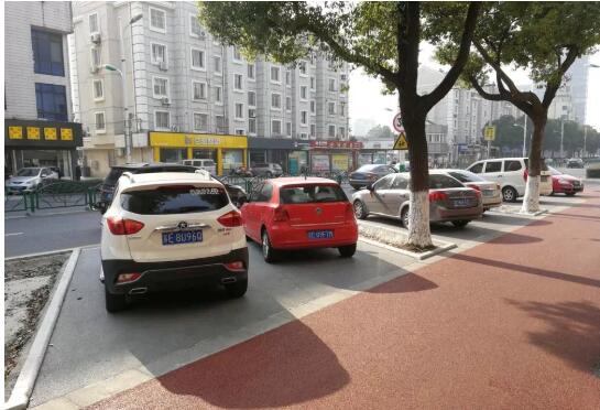 目前道路沿線有條件增設(shè)停車位的地方都已經(jīng)改造一新,改造停車位400余個(gè)。停車位路面根據(jù)不同功能分別鋪設(shè)了透水粒子、水泥磚、草坪磚等;非機(jī)動(dòng)車道鋪設(shè)了彩色瀝青。