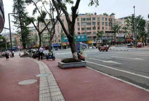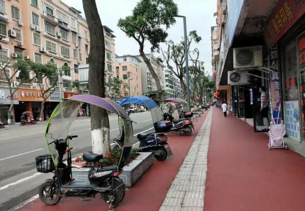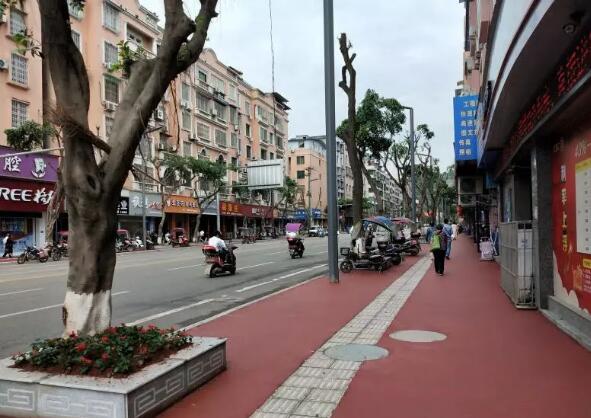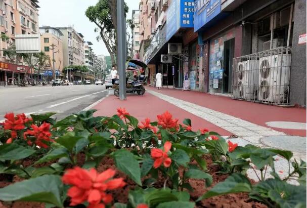 4月28日,記者來(lái)到建設(shè)路一段大富豪至九龍?zhí)焯荻慰吹?,街道兩旁棗紅色的人行道舒適平坦,灰白色的大理石樹(shù)池里新栽植的一串紅在初夏的晨光里搖曳生姿,改造后的人行道煥然一新,市民行走在嶄新的道路上舒適愜意。