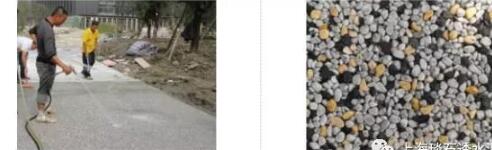 (4)面層效果要求:在達到孔隙率與透水性、強度與耐久性等要求的基礎(chǔ)上,須滿足表觀要求,面層洗出后,不可殘留漿體,不可大片脫落石頭,裸露石子色彩分布均勻,具有較好的裝飾效果。