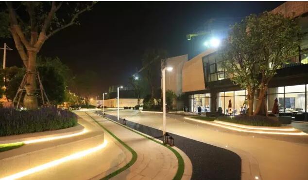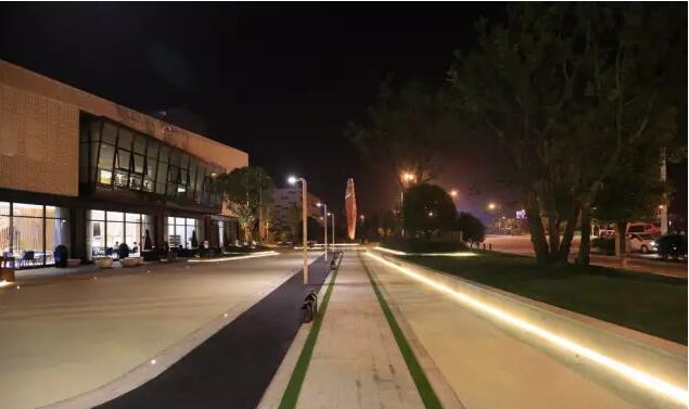 燈光設計也是本項目重點設計之一。地面的點式地燈、花池邊隱藏的燈帶、高桿庭院燈等燈光的設計統(tǒng)一協(xié)調,點、線、面以及光色的搭配,使得遠處的自然風光與燈光景觀相得益彰。
