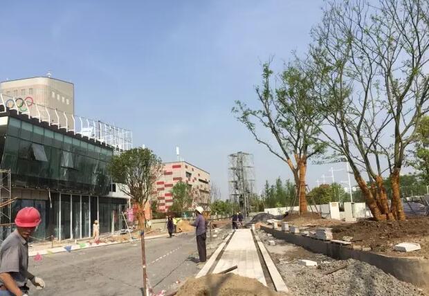 售樓部內側以透水混凝土為主的內街街景現(xiàn)場施工實景