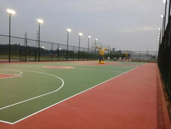 第五步:刮彈性層:硅PU彈性層開(kāi)桶后,加入約一紙杯水(150-300g)攪拌均勻,用稀釋劑調(diào)整材料的稀稠度,用專用工具均勻刮涂在場(chǎng)地上,第一遍固化后再施工第二遍或第三遍,每遍施工最好不超過(guò)2MM,同時(shí)須在第一遍施工完成后須找平場(chǎng)地積水。