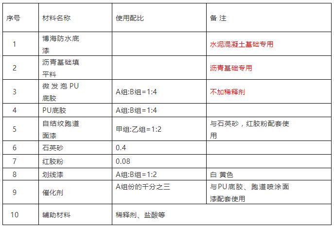 發(fā)泡自結(jié)紋塑膠跑道材料使用配比