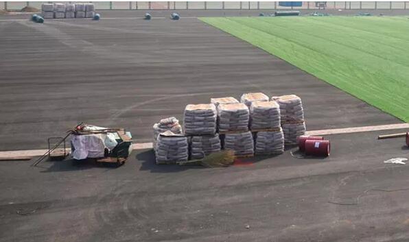 所采用的橡膠顆粒、石英砂等輔料雜質(zhì)太多或者含泥量較大;